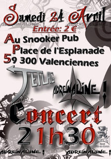 Hier soir fut le premier concert d’Aymeric avec son nouveau groupe : Jetlag ! Après seulement 7 répétitions ensemble, ils ont assurés comme des chefs 🙂 Encore bravo aux membres du groupe 🙂 Et merci aux copains qui sont venus le soutenir. Une petite photo du groupe Et pour finir Aymeric qui prend une pose……