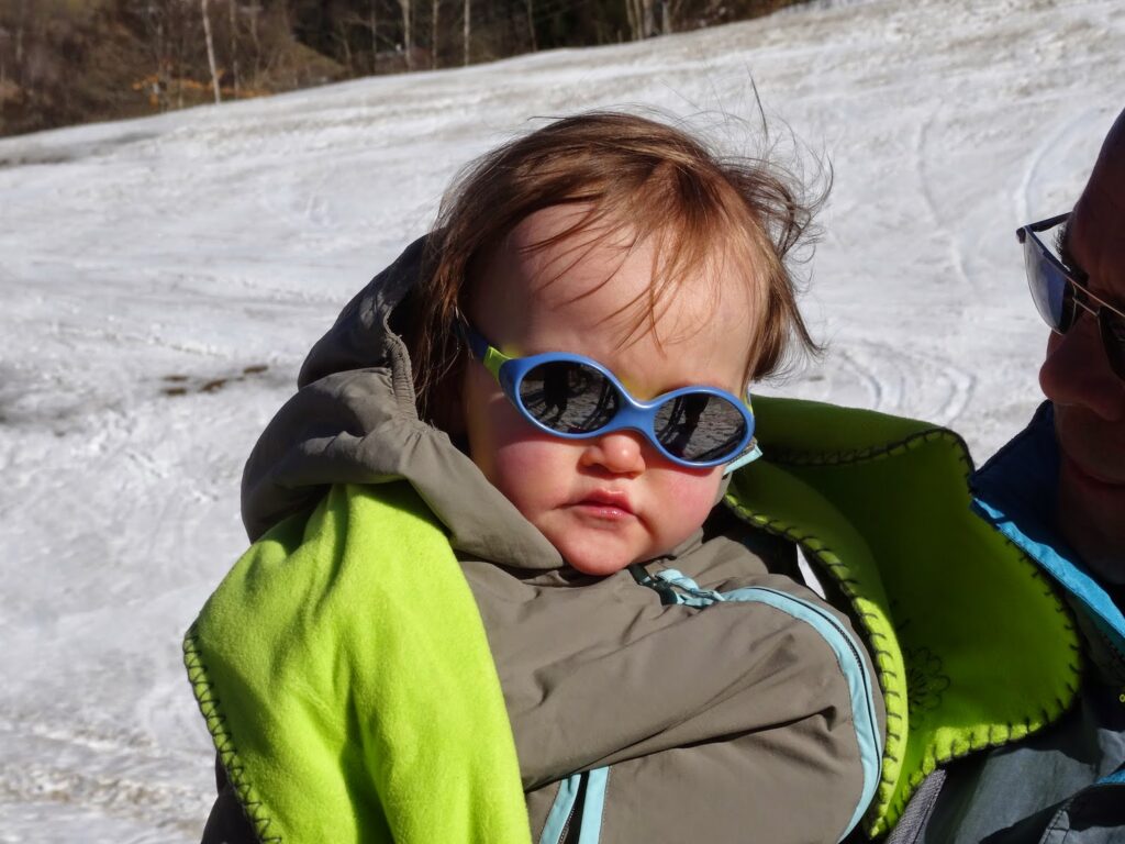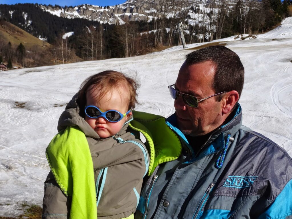 La semaine s’est très bien passée, avec du beau temps pratiquement tout le temps (sauf le dernier jour, pas de regrets d’être repartis ! ) Pas de bobo à déplorer, et quand à Maxine, elle a fait de la luge, une bonne sieste dans les bras de Mamie sur le plateau du Cuby Cuvy, et elle a même pris le télésiège (là, il faut avouer que Papa-Maman ne faisaient pas les fiers … )