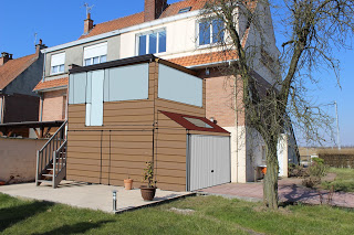 Je compte étendre la construction jusqu’au mur de la maison, englobant la porte d’en bas, qui n’est plus très efficace. (sur la projection, l’avancée s’arrête avant la gouttière, mais je pense l’englober également)