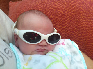 Mais il y a pas mal de soleil dans le salon, Maman m’a donc acheté des petites lunettes de soleil, mais elle sont encore un peu grandes pour moi :p
