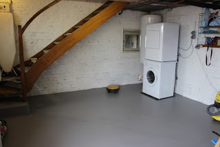 Nous avons aussi profité des travaux pour faire des petites modifications dans le sous sol. Notamment un bon ré-agréage qu’il était plus que temps de faire, ainsi qu’une peinture plus imperméable sur les murs et une peinture au sol, afin de rendre l’endroit moins salissant et aussi plus facile à nettoyer.
