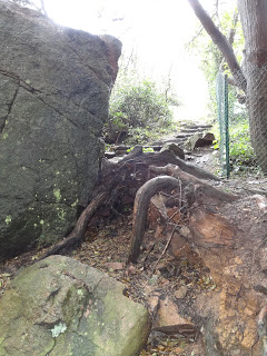 nous arrivons à nous en dépêtrer et prenons un sentier pentu et bien gadoueux