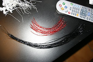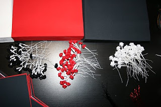 Matières premières : serviettes intissées blanc, rouge, noir, fil de fer, fleurs, et beaucoup de dextérité!