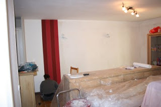 La salle a manger côté gauche, détapissé, saigné, et gainé