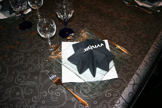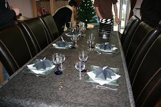 Pour la table, rien de bien compliqué non plus 🙂 une belle nappe et un petit pliage de serviette en forme de flocon