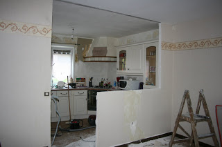 Avant nous devons mettre la toile intissée sur les murs de la cuisine… La peinture, on verra par la suite.