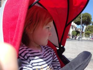 Nous voilà partis en Sicile, pour une semaine, dans la ville de Catane, au sud-est de l’île. Premier voyage en avion pour Maxine ! (et papa)