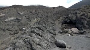 Autre chose de sympa : il restait encore de la neige sur les flancs de la montage, recouverte par une dizaine de centimètres de cendre…