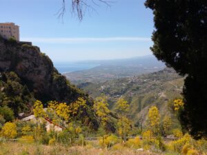 C’est une petite ville au nord de Catane, pas grand chose à dire sur cette ville à vrai dire, c’est assez vite traversé, en voiture ^^ Du coup, nous nous sommes plutôt (le chien de Dingo) arrêtés a Castelmola, un peu plus haut, où nous avons promené toute la journée. Il y a notamment une belle vue sur l’Etna, et un château, comme son nom le laisse présager.