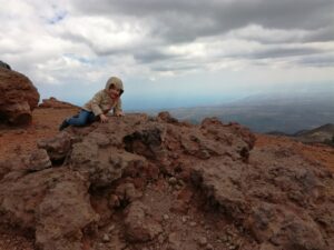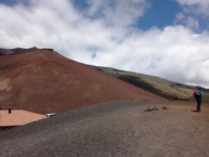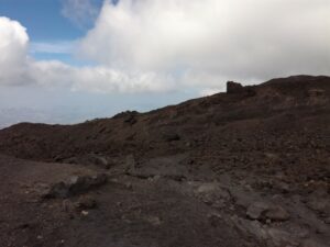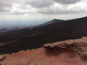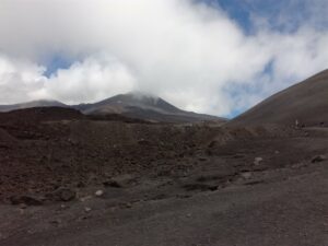 La principale curiosité de Sicile ! C’eût été dommage de ne pas le grimper, au moins partiellement ! C’est donc fait : nous nous sommes rendus a Nicolosi où nous avons pris le téléphérique (30€ par personne … vite rentabilisée comme installation!) pour nous rendrez a 2500m d’altitude, où il fait assez froid et un vent absolument terrible. Mais bon, nous sommes équipés, alors va pour la randonnée !