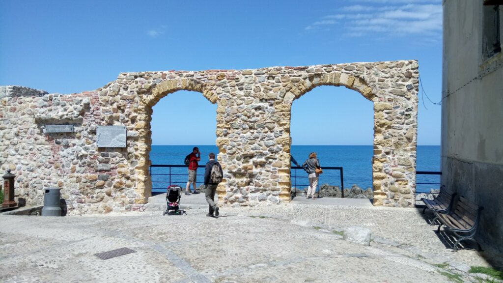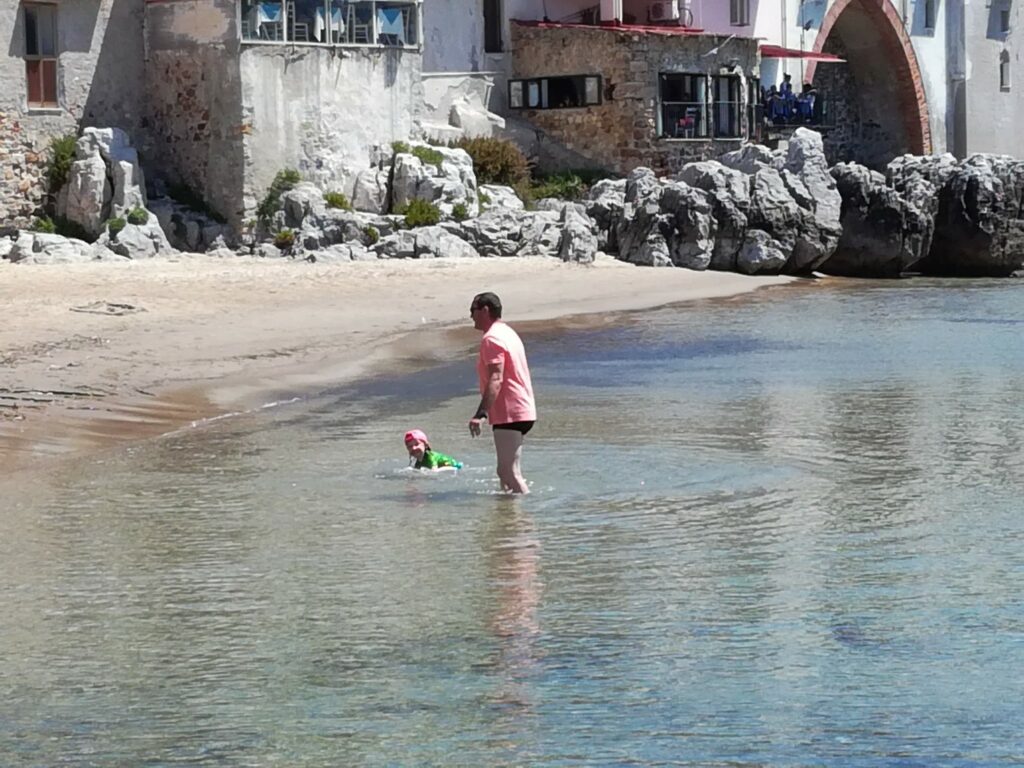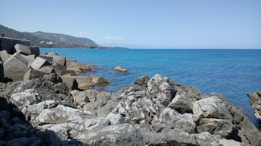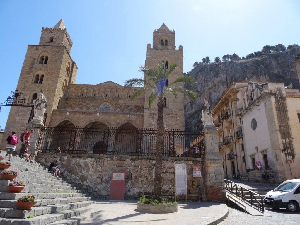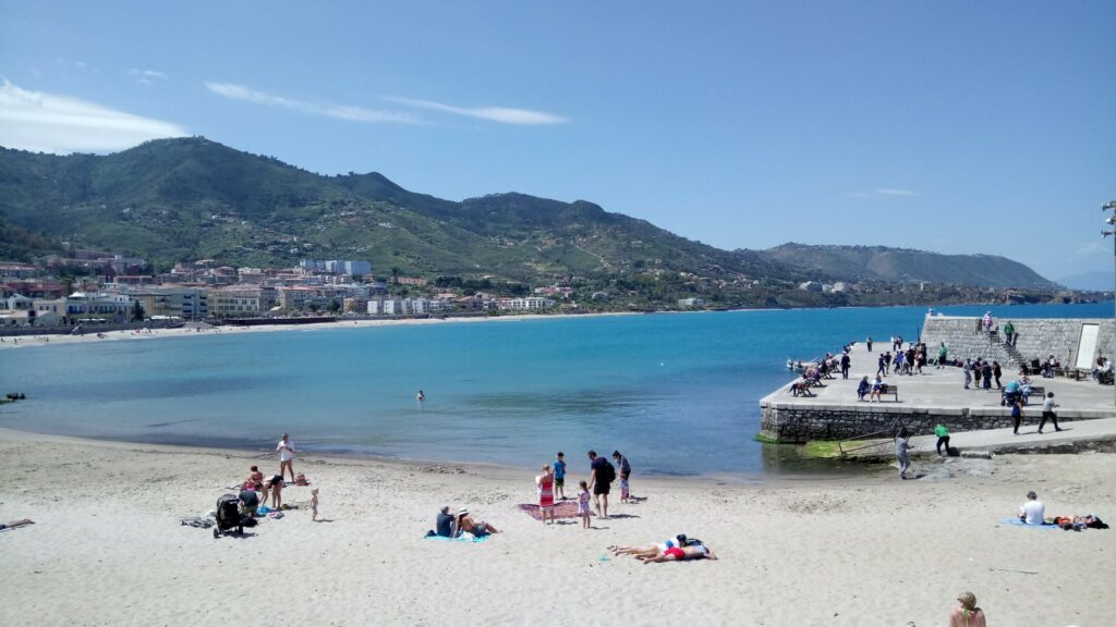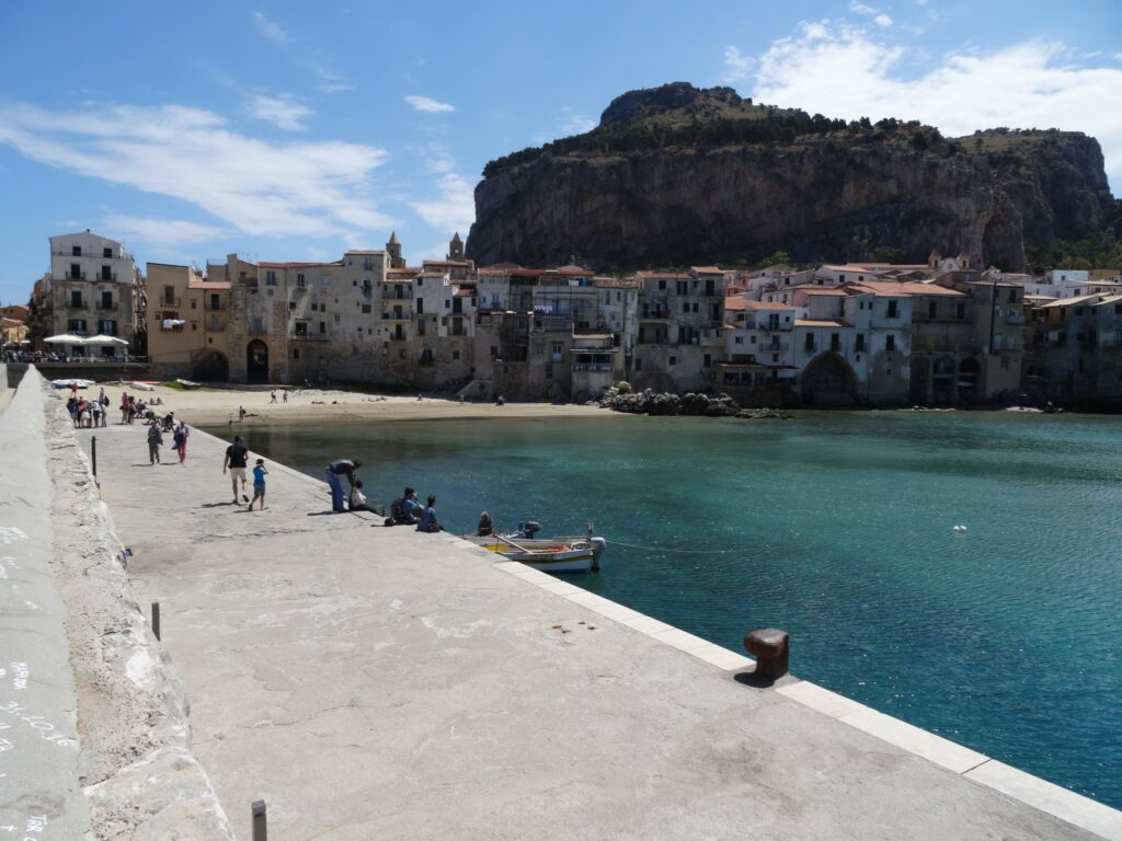 Aujourd’hui nous traversons toute l’île pour aller du côté de Palerme. Après deux heures de route, à traverser des paysages très ruraux, (qui m’ont fait penser à l’image qu’on donne du Mexique à la télé d’ailleurs, ndlr) nous arrivons dans une petite ville du nom de Cefalu, village touristique classique, avec ses petites rues pleines de marchands de brôlles, sa jetée, et surtout sa plage! 5 jours qu’on est là et Maxine ne s’est toujours pas baigné, il fallait faire quelque chose…