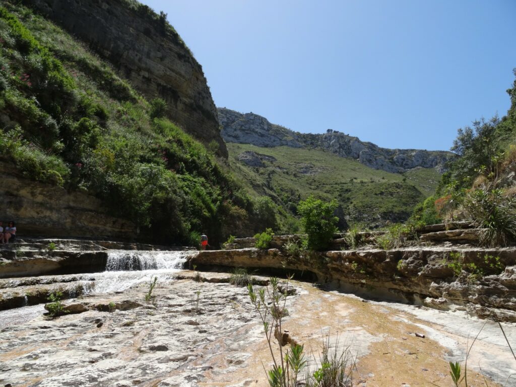 C’est au sud de Cyracuse, qu’on avaient visité auparavant. Le lieu n’est accessible qu’aux prix d’une montée en voiture, puis la descente à pieds, jusqu’à la rivière. Un peu plus d’une heure quand même de descente, c’est pas pour rigoler! Une fois arrivés en bas, ça en valait la peine, une rivière fraîche, translucide, sauvage, et sans trop de monde.
