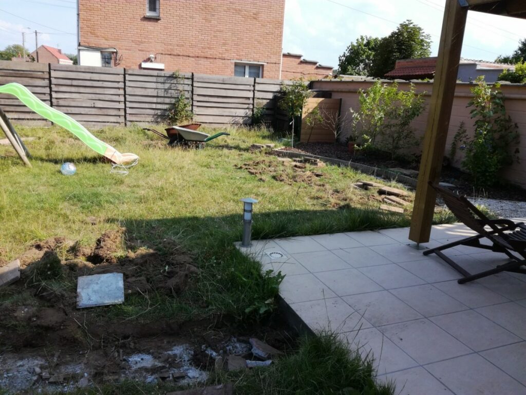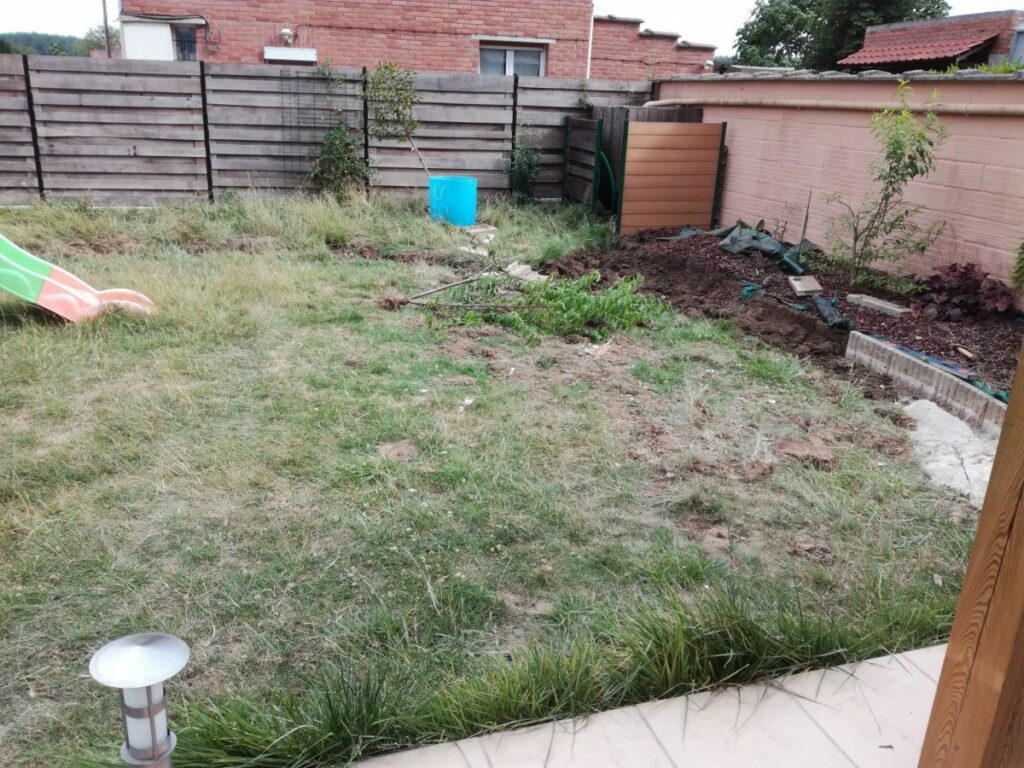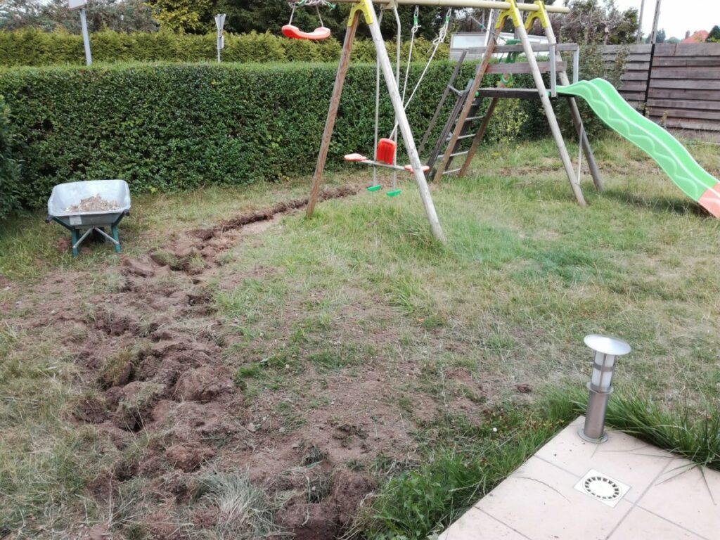 Bref, on a maintenant une belle tranchée dans notre jardin, et de la pelouse complètement défoncée.