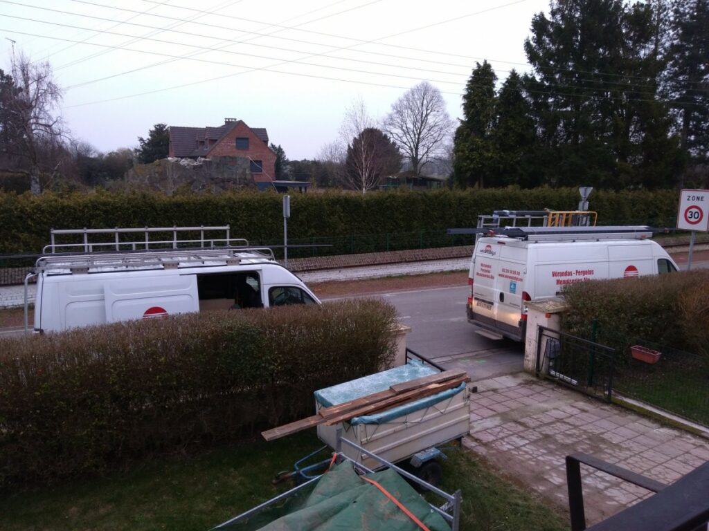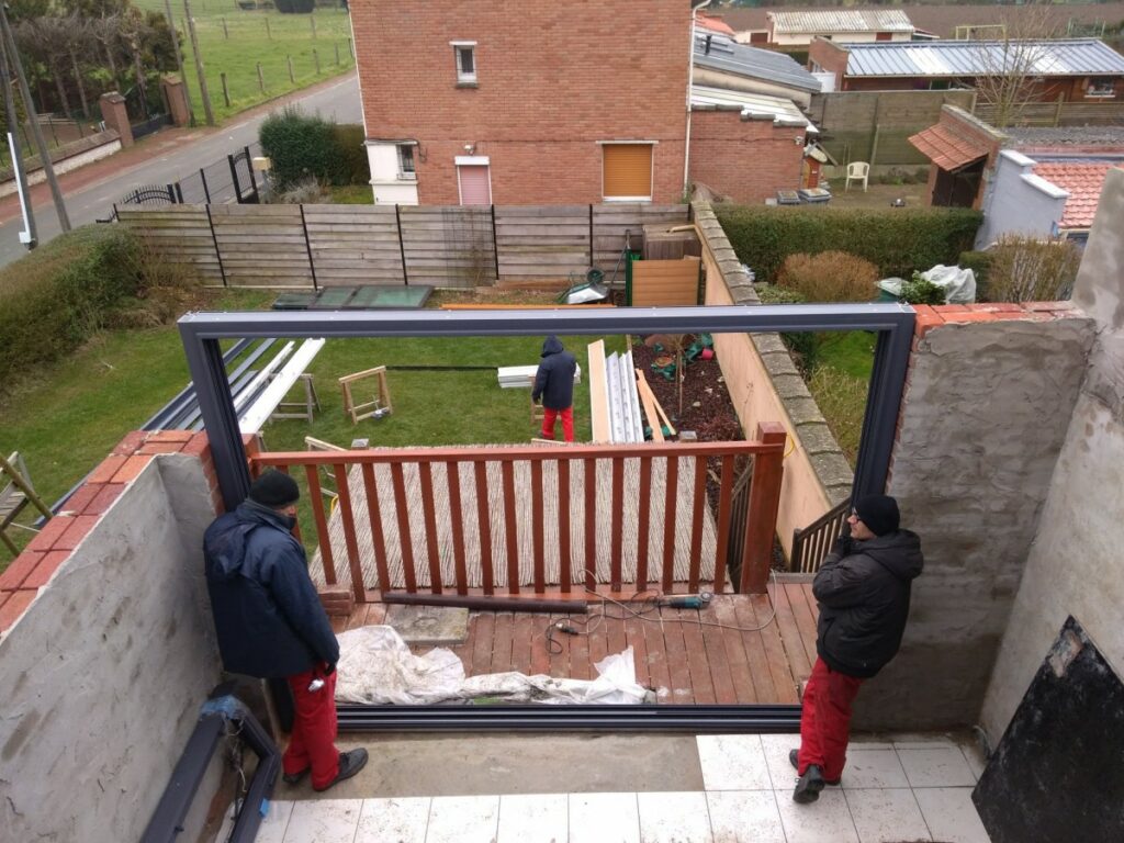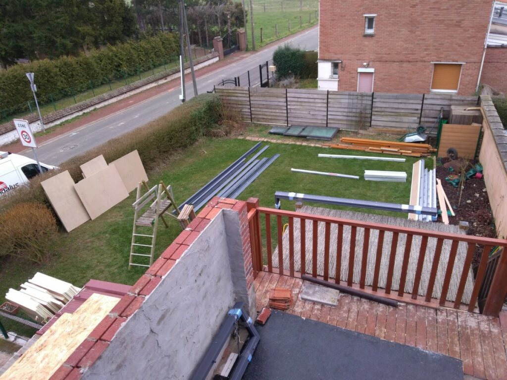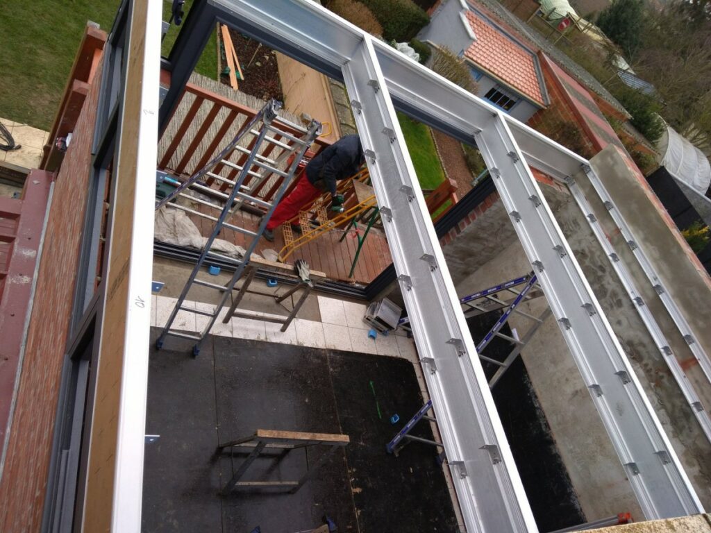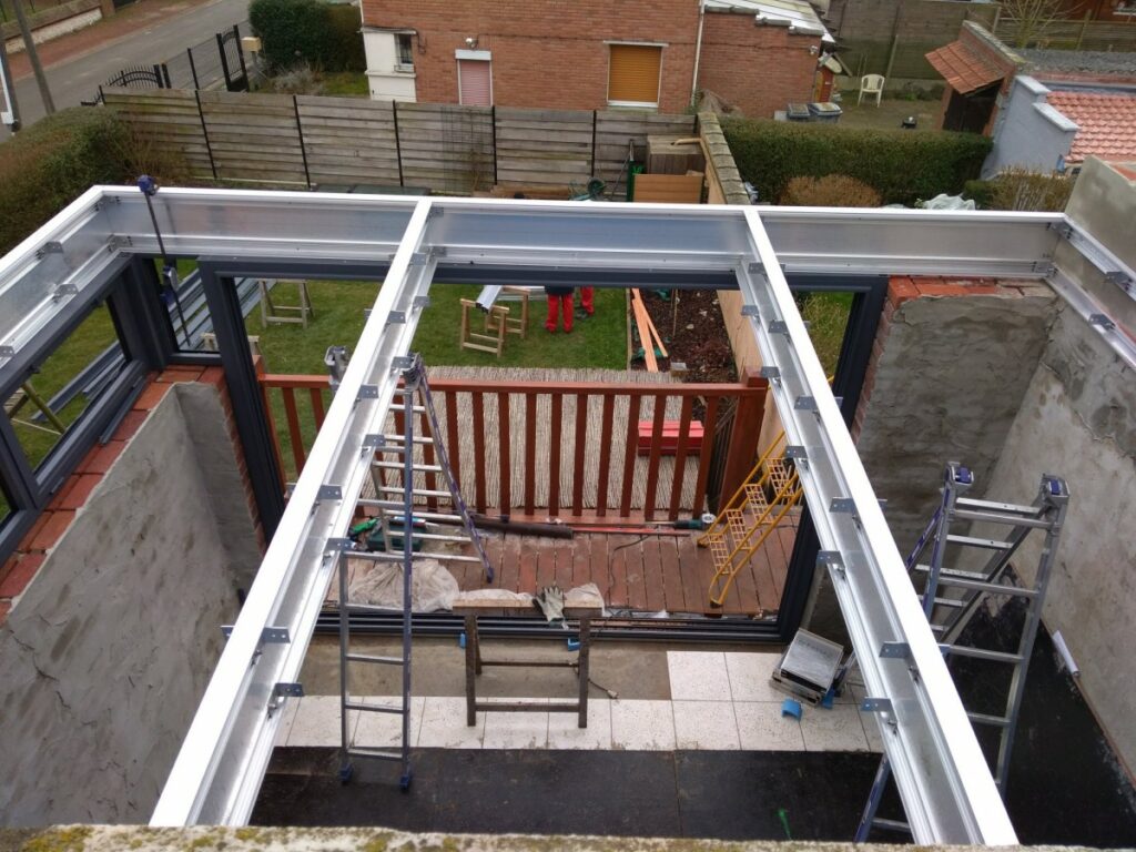 Aujourd’hui un petit événement qui nous a fait plaisir : Les ouvriers de Verandalys sont venus poser la structure de l’extension !