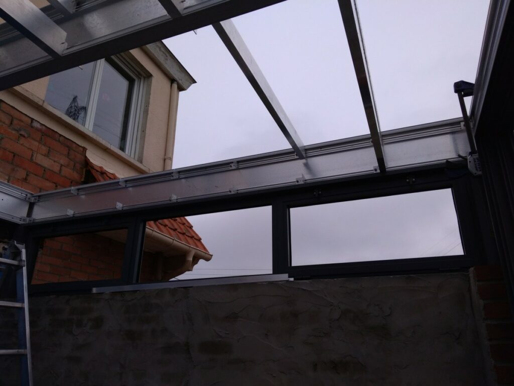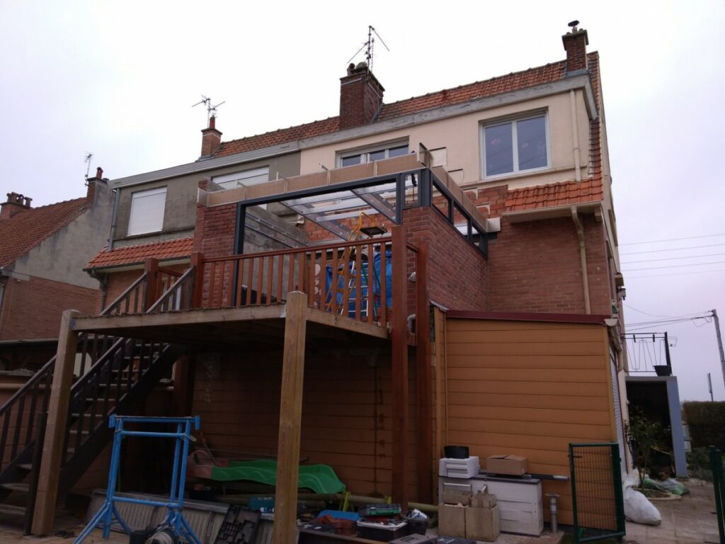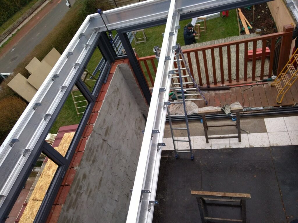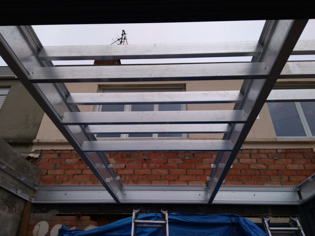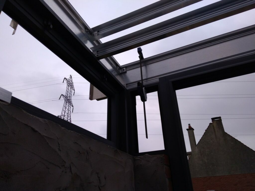 Aujourd’hui un petit événement qui nous a fait plaisir : Les ouvriers de Verandalys sont venus poser la structure de l’extension !