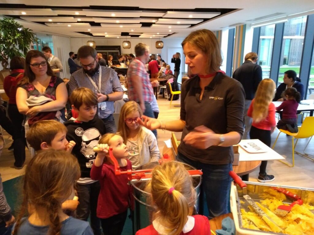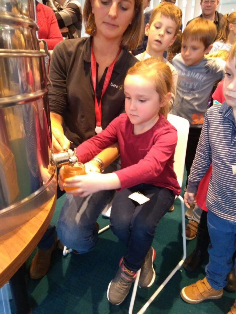 Elle est très curieuse de ce qui se passe autour d’elle, il y a eu une journée « récolte de miel » à mon travail où elle écoutait attentivement la dame qui expliquait, elle a fait tourner la centrifugeuse et remplit son petit pot de miel