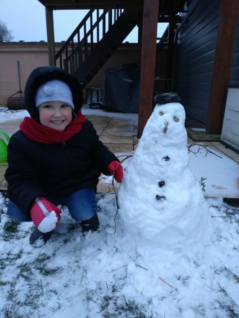 Elle devient bonne en ski et n’a pas peur de descendre les pistes, elle gère les virages, le chasse neige et les remontées mécaniques comme une pro :D, cette année nous n’avons pas pu aller au ski à cause de la grossesse en cours mais le rendez vous est déjà pris pour l’année prochaine. Heureusement nous avons eu un peu de neige cet hiver pour faire un bonhomme de neige et une bataille de boules de neige !!