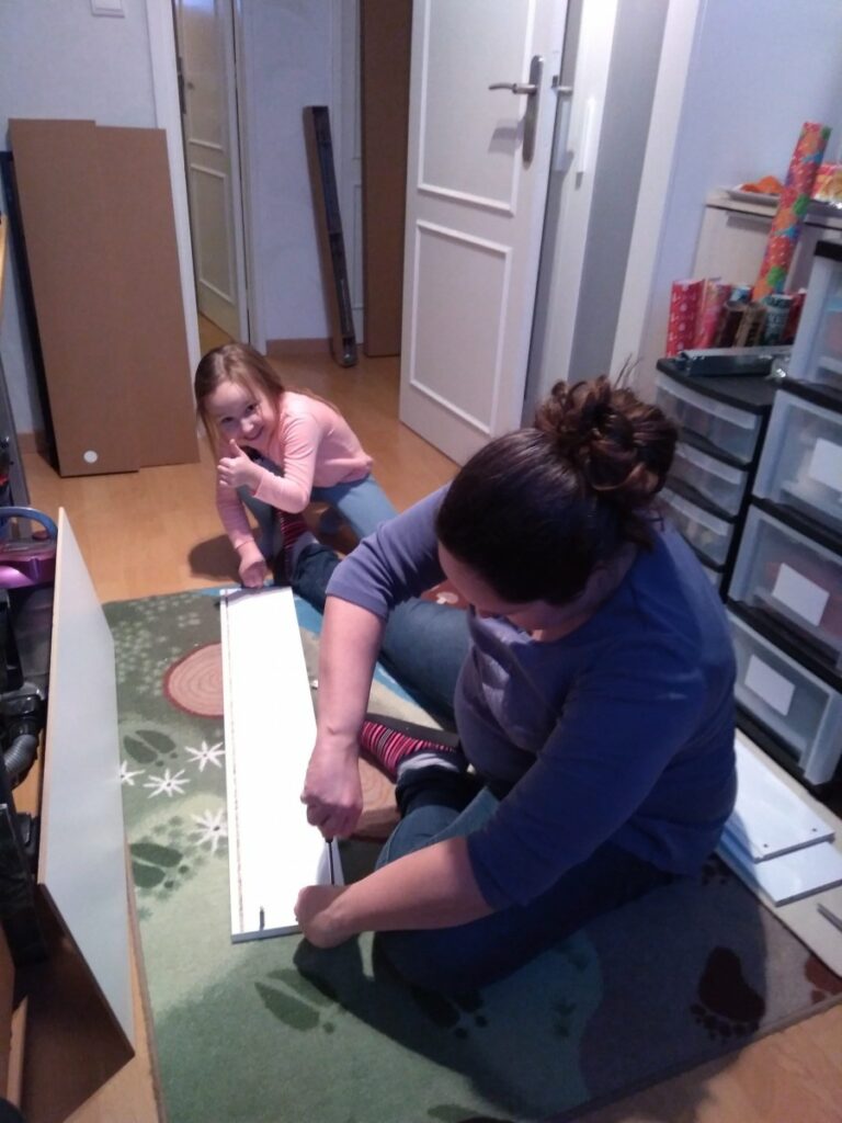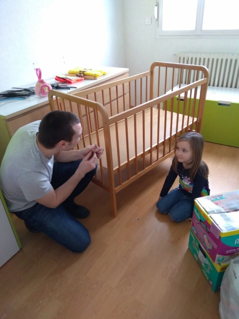 Et plus récemment la fabrication de son armoire de chambre, du lit d’Alexine, et la pose de la décoration de la nouvelle chambre
