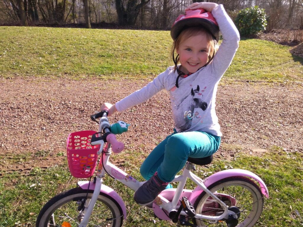 Elle sait maintenant faire du vélo sans petites roues, première expérience en juin où il fallait la lancer et où elle s’arrêtait assez rapidement pour finalement parvenir à faire 4 tours toute seule en février
