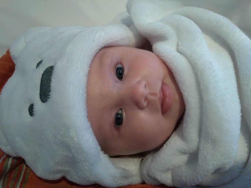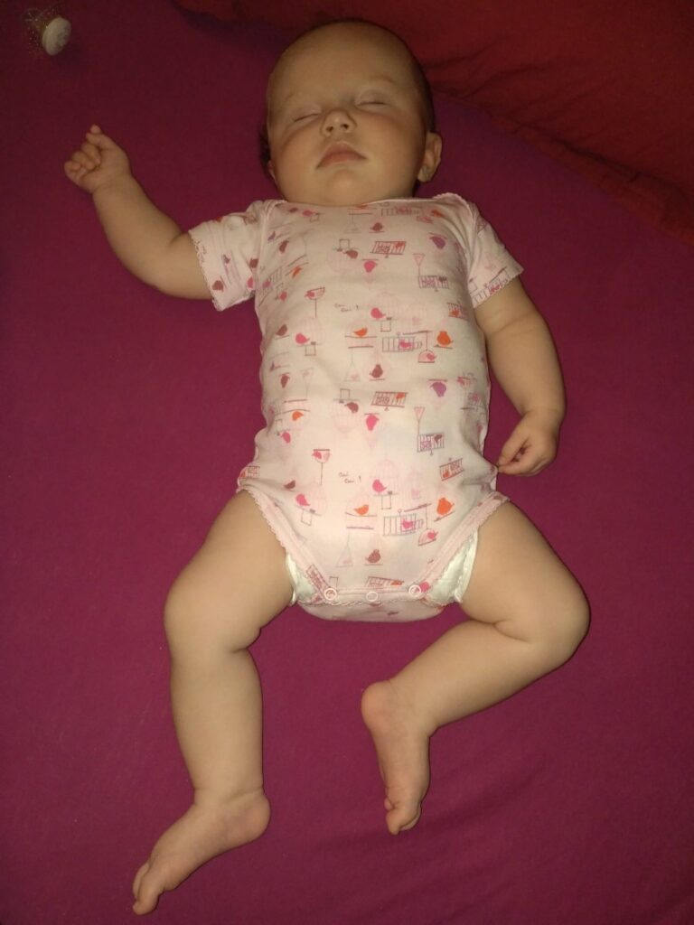 Au niveau motricité, elle commence à se servir de ses deux mains avec une petite préférence pour la main gauche. Elle regarde ses jouets avec attention et elle commence à attraper les choses.
