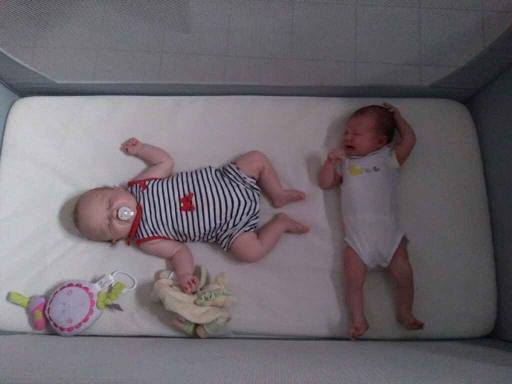 Au niveau des changements, la petite cousine Nely est née le 21 juin, ça y est elle n’est plus la petite dernière 😉 Et c’est drôle comme on ne se rend pas compte à quel point les bébés grandissent jusqu’au moment où on les met à côté d’un nouveau né! Seulement 2 mois les séparent c’est impressionnant la différence de taille