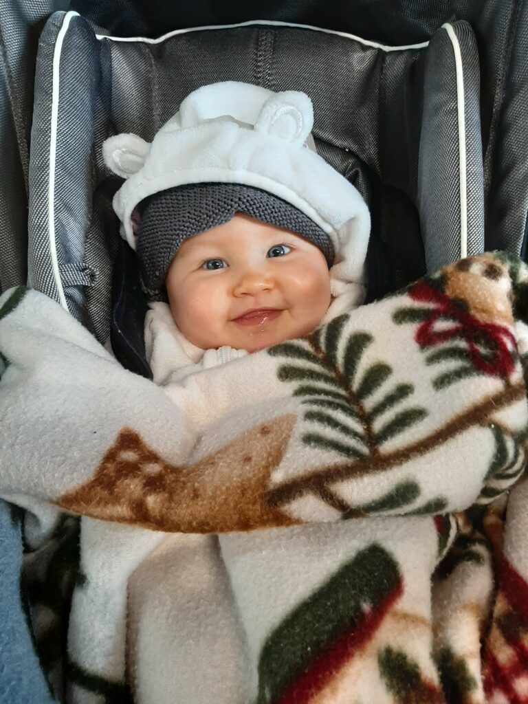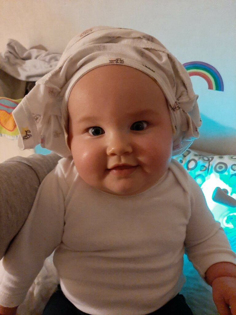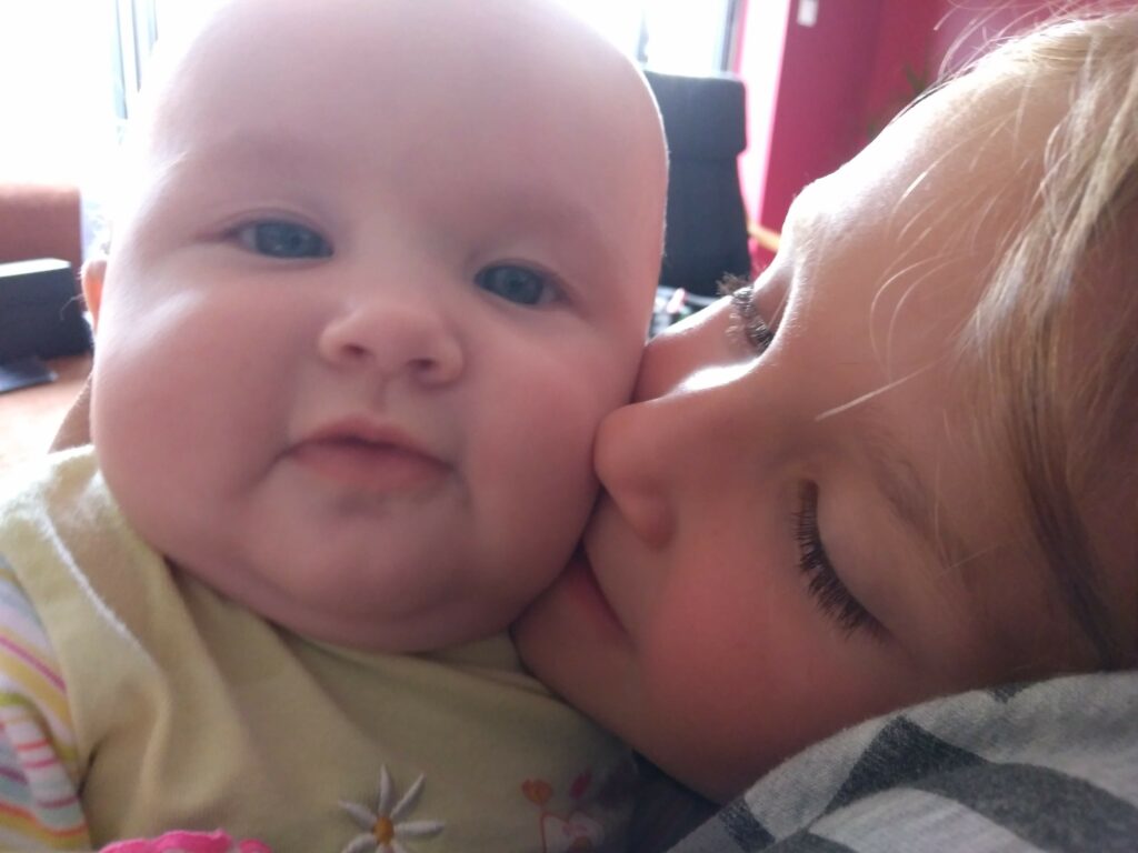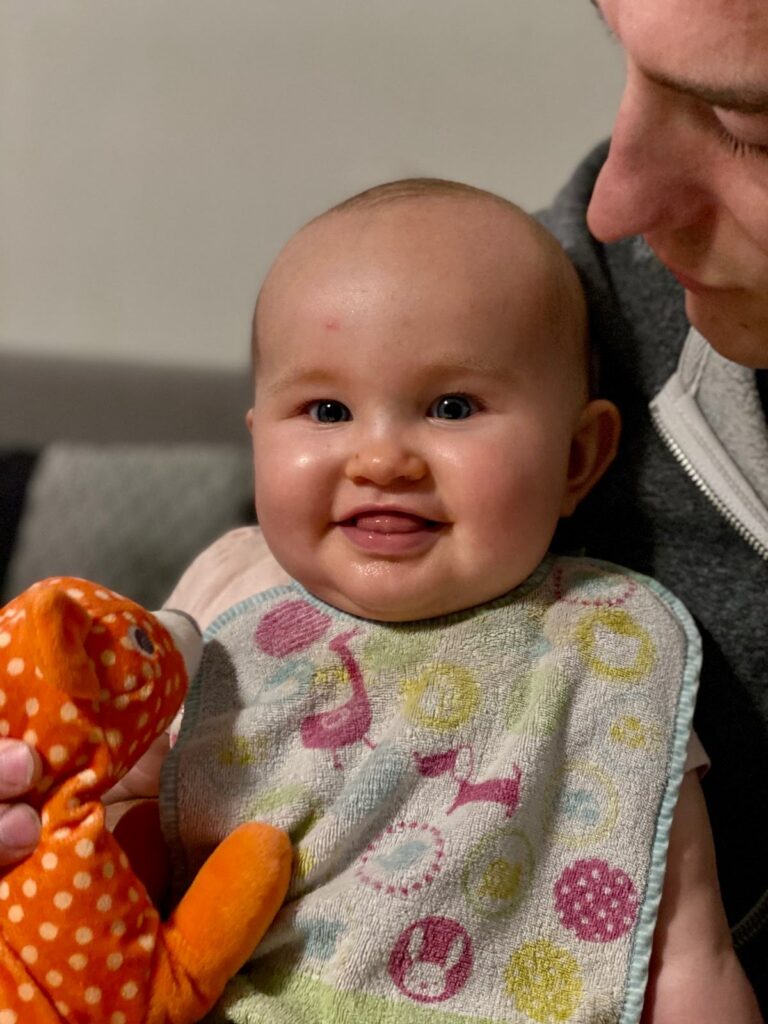 Elle commence à bien interagir avec nous, elle a des fous rires quand Maxine fait le clown ou quand on la chatouille, elle reste très complice avec sa grande soeur