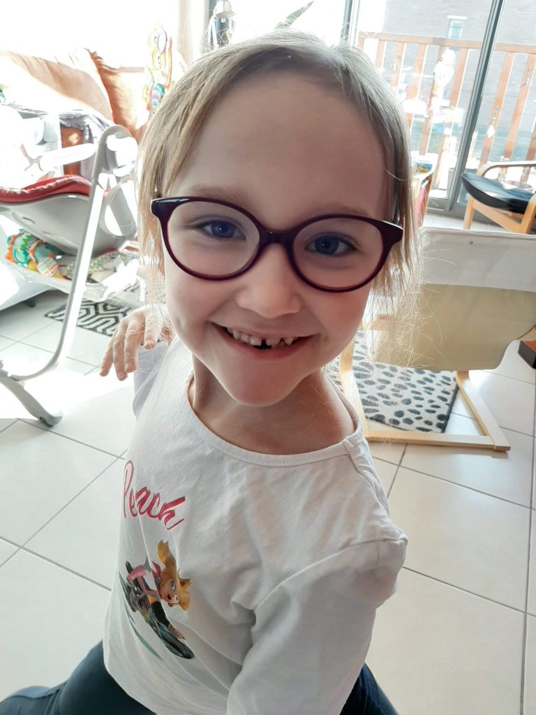 Une petite nouveauté de cette année, le port de lunettes! Elle voit très bien (10 à chaque oeil) mais elle force un peu sur ses yeux. Elle clignait un peu trop des yeux et se plaignait d’avoir les yeux qui piquent. Du coup lunettes pour regarder la télé et aller à l’école car elle est hypermétrope.