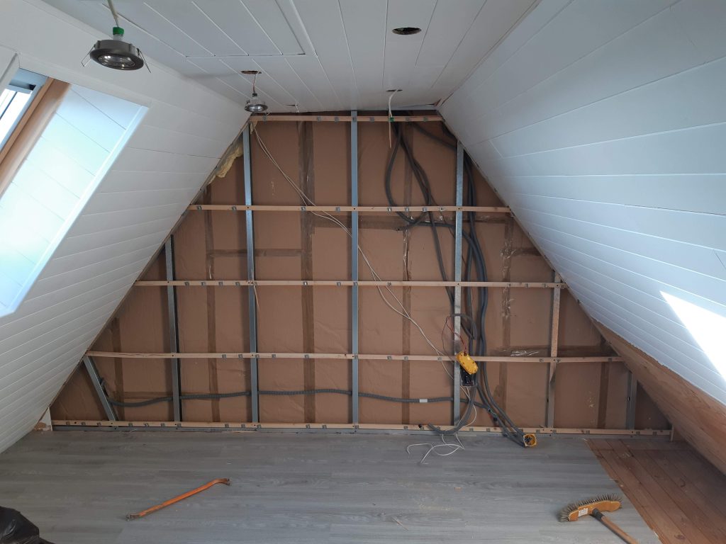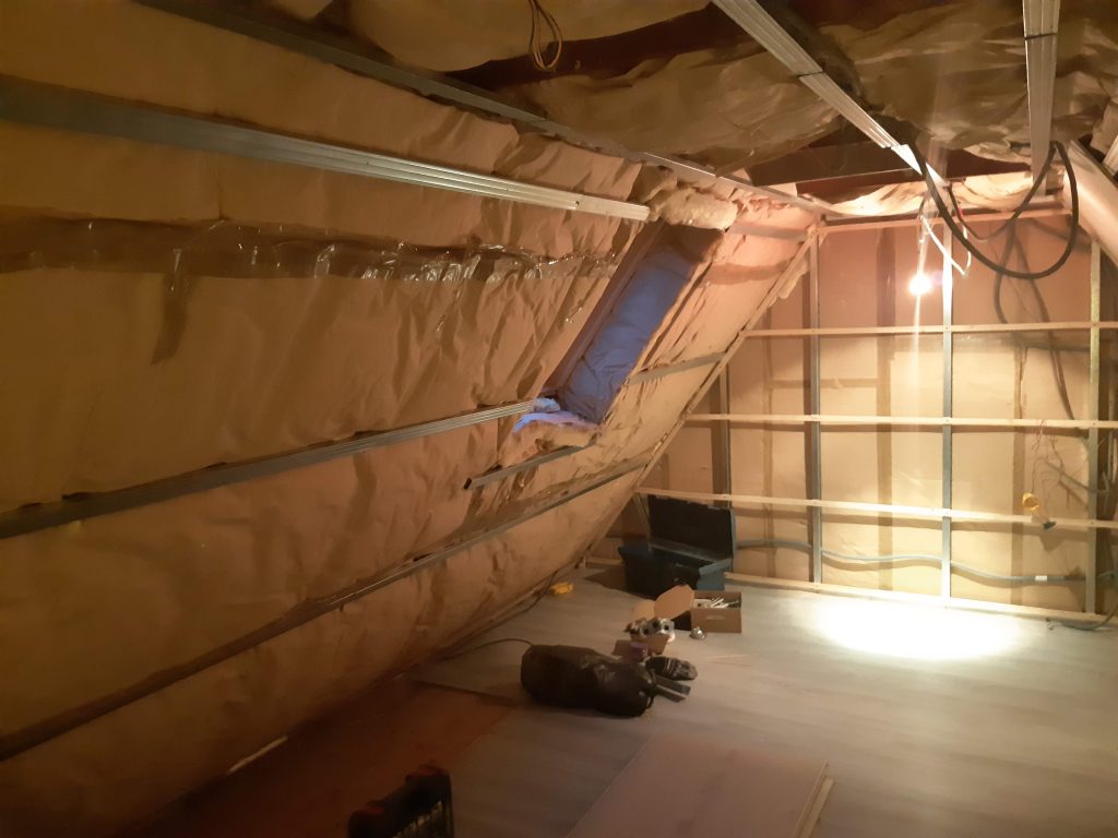 Une chose qui m’est apparue avec le télétravail, c’est que notre grenier n’est pas étanche à l’air du tout. Les quelques premiers jours de temps froid et venteux me l’ont bien prouvé ! Alors, après quelques jours de réflexion, on s’est finalement décidé à refaire tout ça !