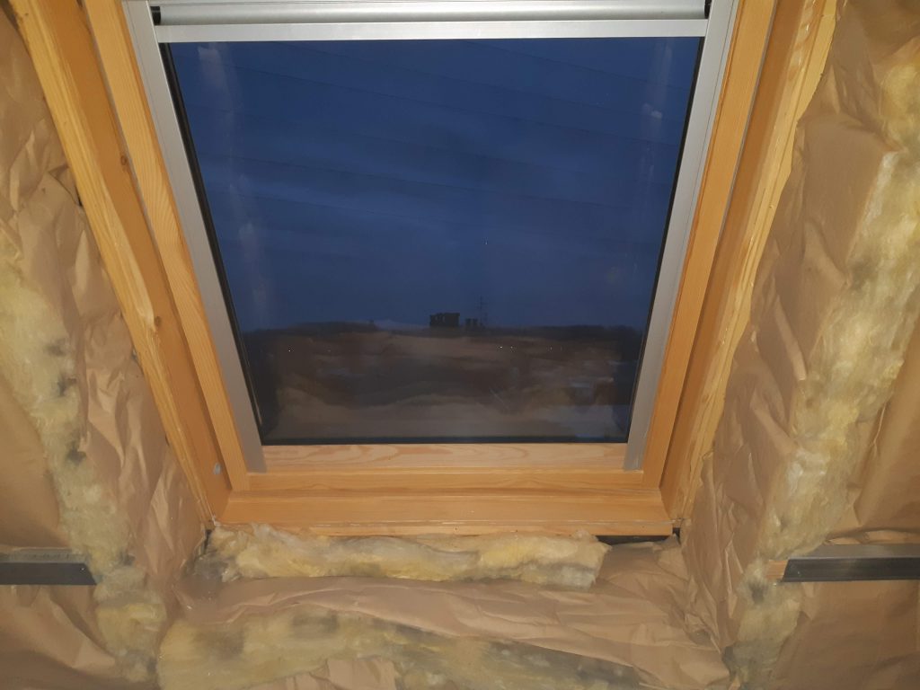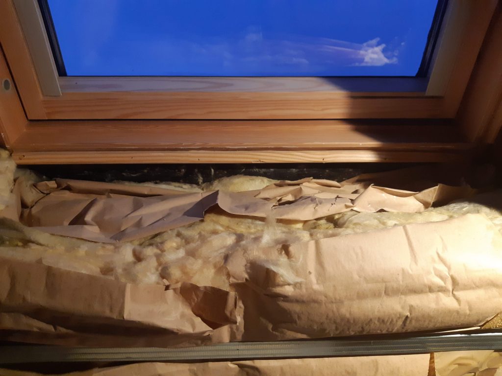 L’isolation n’était pas mauvaise, c’est dommage d’avoir laissé des trous un peu partout, particulièrement autour des vélux. On a donc tout calfeutré comme il se doit.