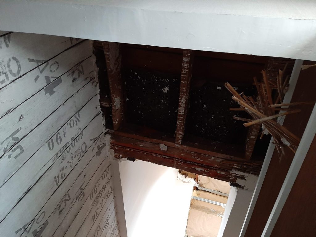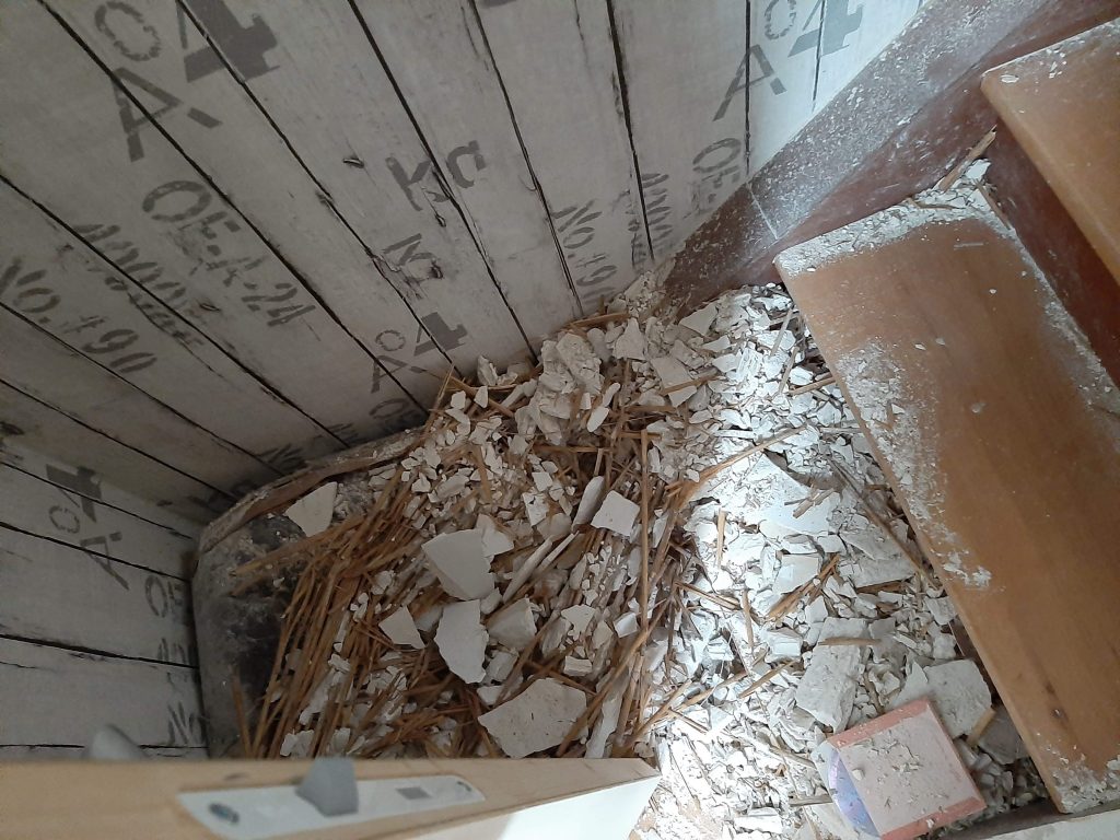 On en profite pour casser le plafond du palier : on va y installer un spot encastré, ça sera plus classe 😉
