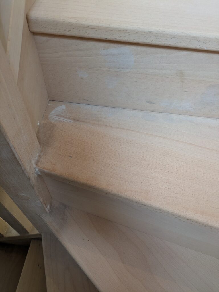 – ponçage et vitrification de l’escalier : c’est fait (4 jours de travail pour rattraper les tâches de béton et de map…)